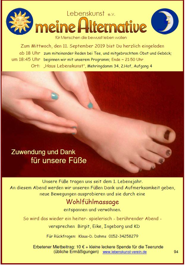 Das Team von "meine Alternative" lädt einmal im Monat mittwochs im Haus Lebenskunst zu einem gestalteten Abend ein, immer mit Gedankenaustausch.