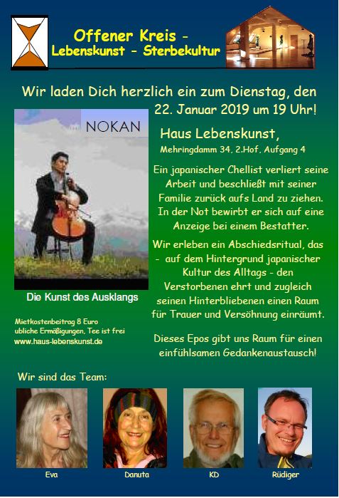 Der Offene Arbeitskreis Lebenskunst - Sterbekultur lädt einmal im Monat dienstags im Haus Lebenskunst ein zu einem Gedankenaustausch.