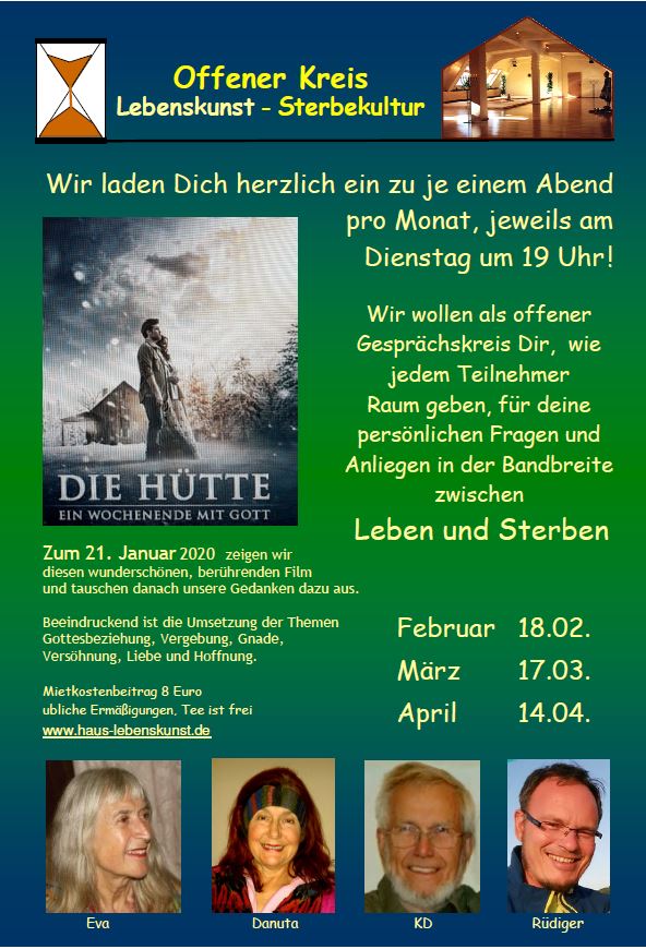 Der Offene Arbeitskreis Lebenskunst - Sterbekultur lädt einmal im Monat dienstags im Haus Lebenskunst ein zu einem Gedankenaustausch.