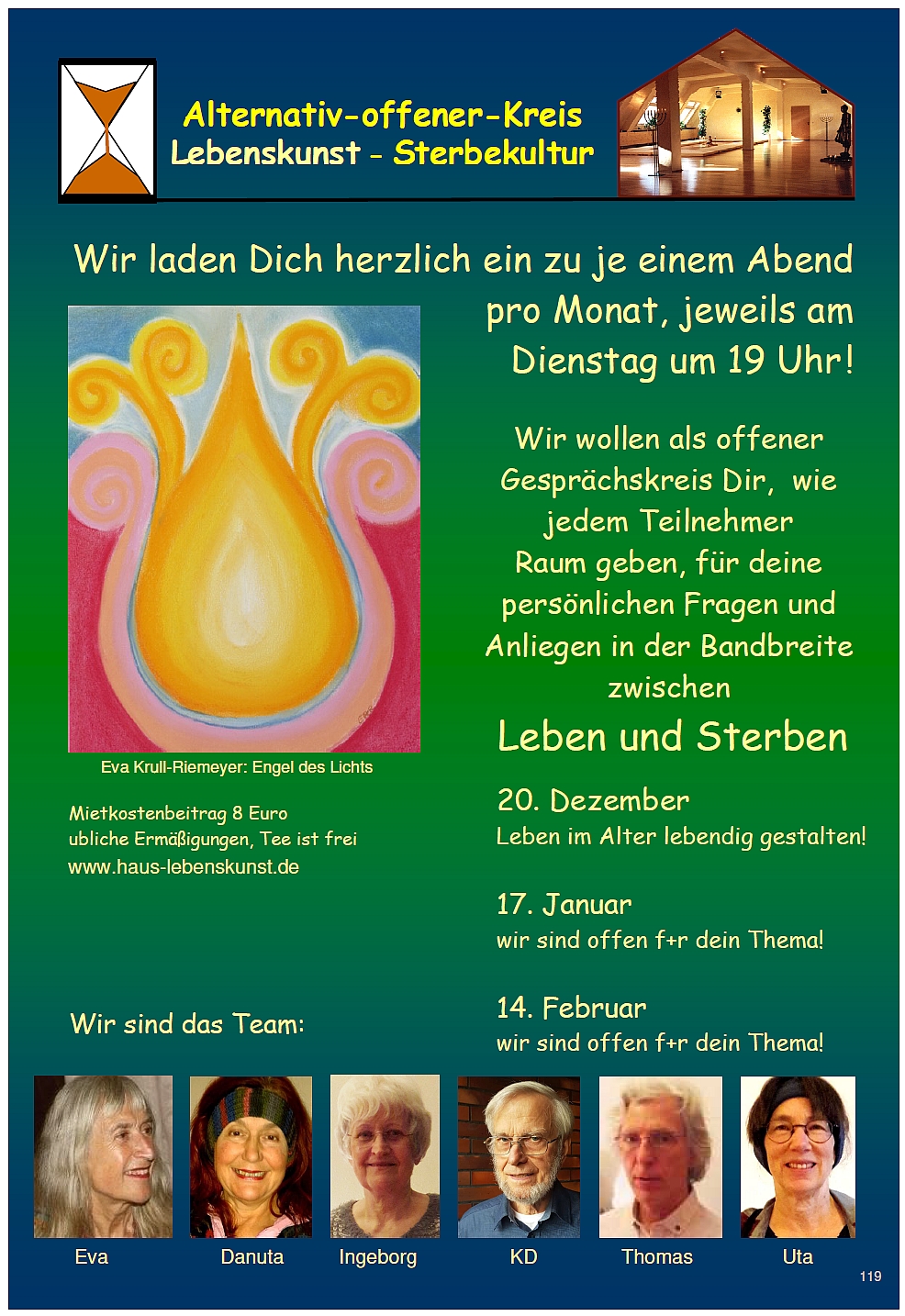 Wir laden einmal im Monat dienstags im Haus Lebenskunst ein zu einem Gedankenaustausch.