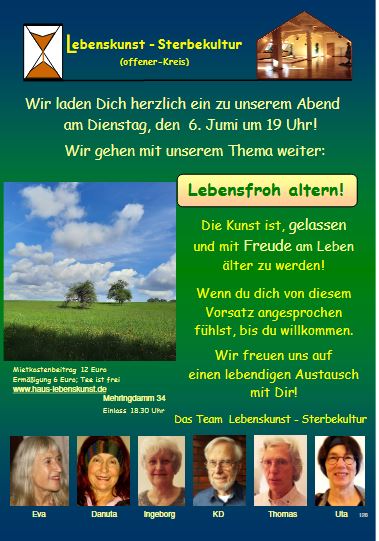 Der Offene Arbeitskreis Lebenskunst - Sterbekultur lädt einmal im Monat dienstags im Haus Lebenskunst ein zu einem Gedankenaustausch.